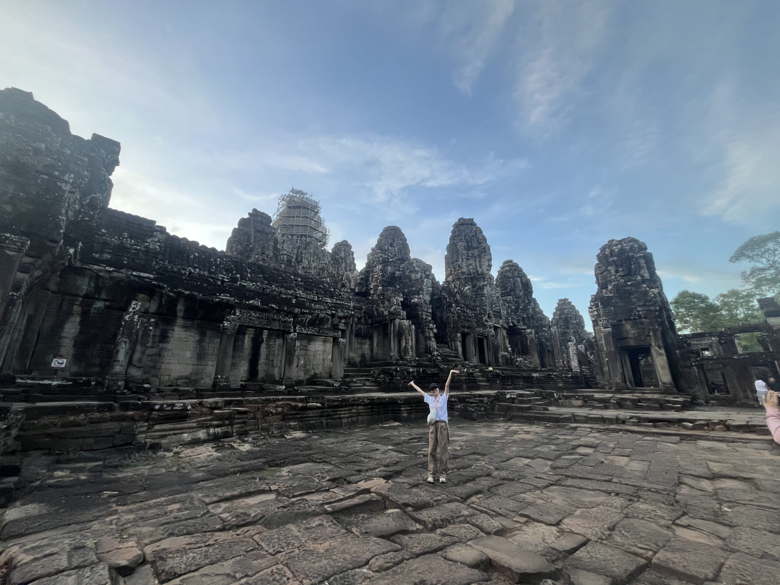 学会2日目の午後は,プノンペンからシェムリアップへ数時間のバス移動.その翌日にはクレン国立公園で滝や寺院を見学し,世界遺産のアンコールワットも訪問しました.雄大な自然と壮大な建築を全身に感じる貴重な経験となりました.現地でできた友人たちには素敵な写真をたくさん撮ってもらいましたよ!
